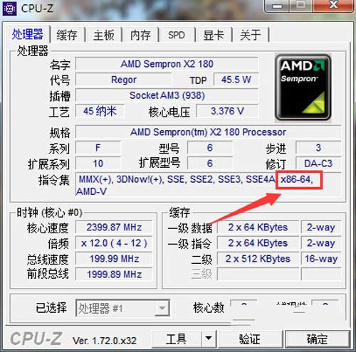 使用CPU-z查询处理器是否支持64位