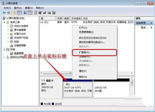 接着我们现在开始给C盘增加空间,选择扩展卷!