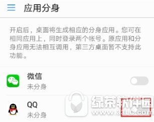 3. 进入【应用分身】页面,默认的QQ是未分身的。要分身的话,需要点击一下右侧的开关按钮;