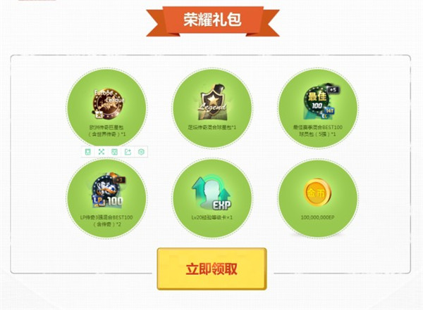可领取绿茵礼包一份,每个帐号只能领取一次;