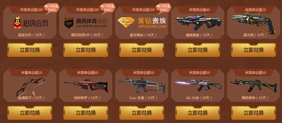 抽奖获得的幸运值,可用于兑换以下道具。