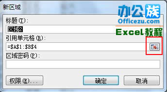 3、在弹出的“新区域”页面框中找到“引用单元格”文本框右边的“拾取器”按钮,选择可被编辑修改的单元格后按“确定”按钮。