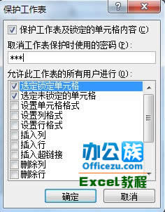 5、在“保护工作表”页面框中输入取消工作表保护时的密码(这样就不会随意被别人取消保护)。