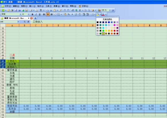 如图例所示,总支出的公式应该是“=SUM(B48:B60)”。