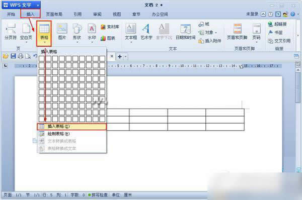 通过“插入”—“表格”—根据行列要求通过选择方格的形式插入表格。