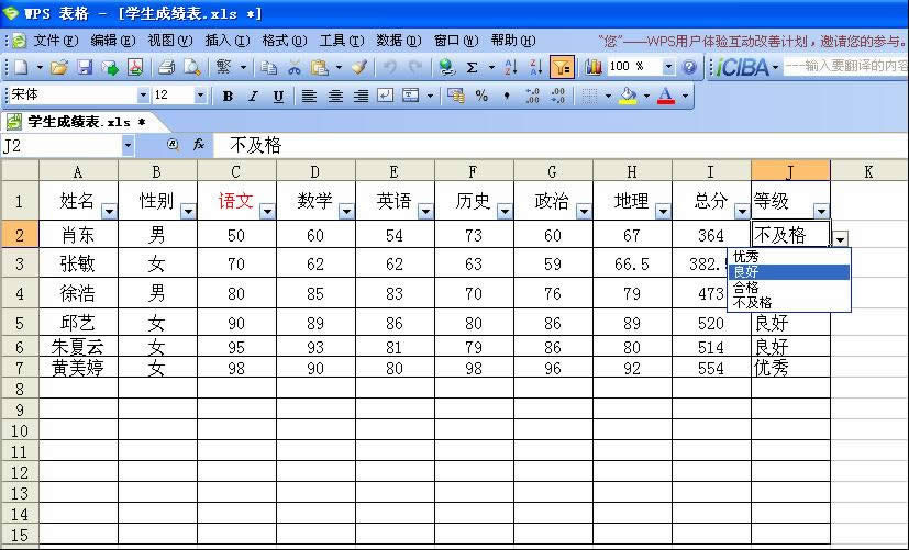 下面就来看看WPS表格中的自动筛选功能是如何帮我快速完成成绩统计的。
