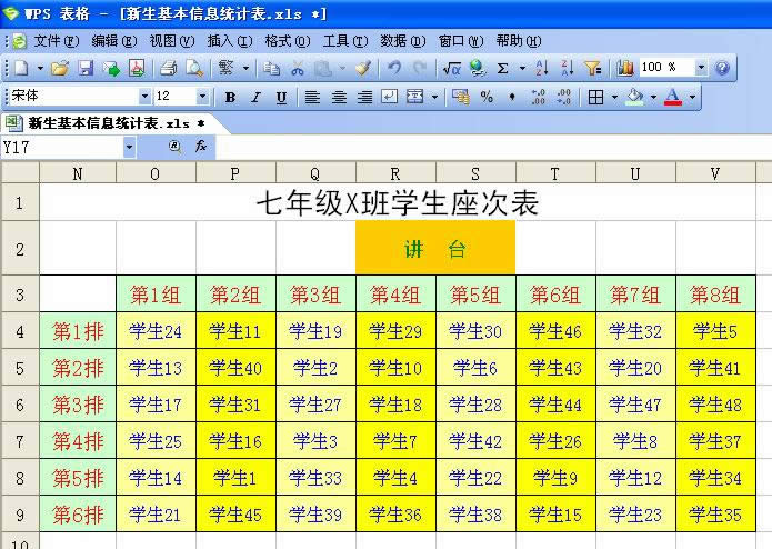 排座次的工作虽已初步完成,但这样的表示方式不易为七年级的新生所理解,也不便任课教师使用。利用WPS表格的数据筛选功能可以将其转化为表格,方法如下: