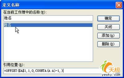 选择《成绩表》A1,点击【插入】【名称】【定义】,然后按图3方式输入信息:当前工作簿的名称处输入“姓名”(不含引号),在引用位置处输入“=OFFSET($A$1,1,0,COUNTA(A:A)-1,)”。公式含义:通过COUNTA(A:A)-1返回A列学生数目,减1是因A列中非空单元格数量包括首行“姓名”二字;然后利用OFFSET函数提取A列所有学生姓名。