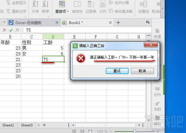 8:单输入的数字不在这有效性内就会显示提示出来。