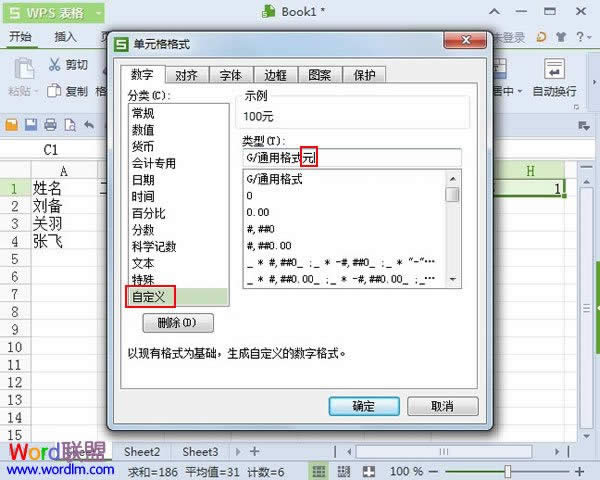 ③在数字标签里面选择自定义,然后在类型里面加个元字。