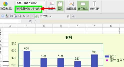 就完成了大概的基础了,点击图表区,选择上面的”累计百分比“,再点击旁边的”更换图表类型“。
