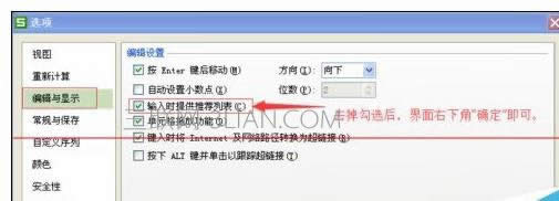 2、编辑与显示---输入时提供推荐列表(勾选去掉)---确定。