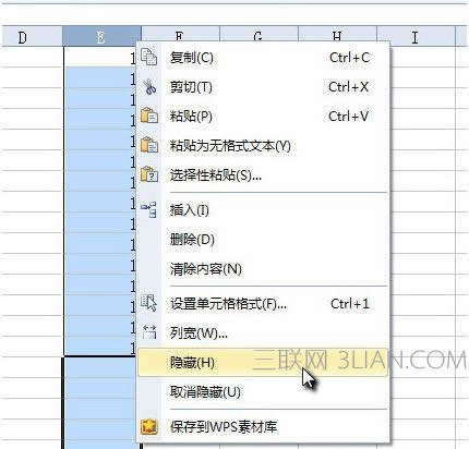 方法二:就是直接隐藏整个列或者行,我们直接选中需要隐藏的列或者行,右键菜单选择"隐藏"