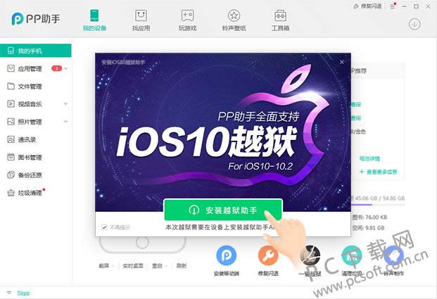 2.今天我们需要使用到的神器就是pp越狱助手,大家需要提前将其下载到电脑上,然后还需要下载itunes软件。