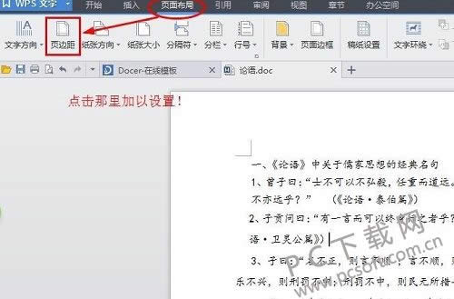 2.首先,大家要打开想要编辑的Word文档,小编在这里以Wps为例,然后在上方菜单栏中切换到“页面布局”选项卡,然后找到“页边距”的选项,就在红框选中的位置。