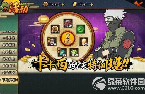 1.活动期间,玩家每日登录游戏可领取卡卡西的特训奖励,首次免费领取、每日额外有一次金币补领。