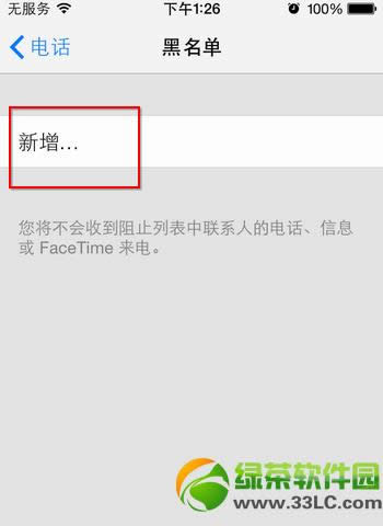 阅读全文进入iOS7设置界面,点击“电话”即可看见“黑名单”栏目; 点击“新增”即可增加你想要屏蔽的联系