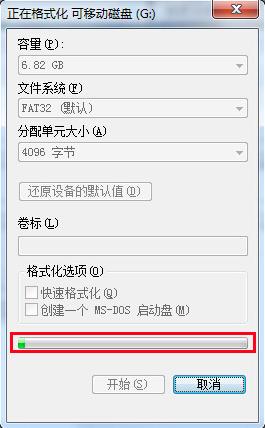 格式化的时间取决于u盘的大小,所以需要大家耐心的等待