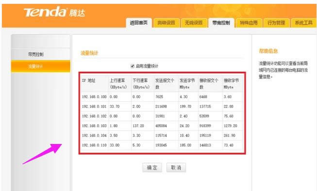 点击左边的“流量统计”,找到偷网人的ip地址。