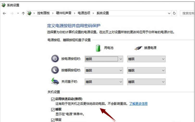 具体方法:点击“开始”菜单→“设置”→“系统(显示、通知、电源)”→“电源和睡眠”→“其他电源设置”,在弹出面板中点击“选择电源按钮的功能”→“更改当前不可用的设置”,勾选“启用快速启动”就可以了;