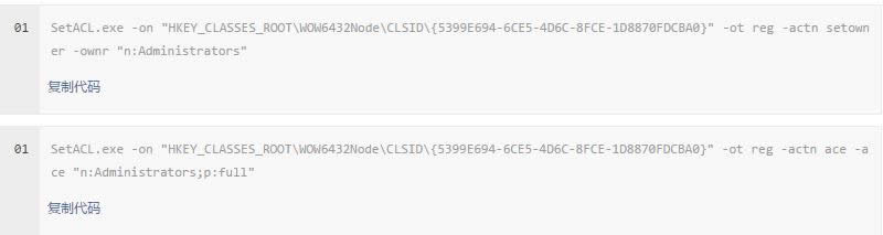 同理,上文中提到的另外一个注册表项也按照上述方法进行权限获取,具体命令如下: