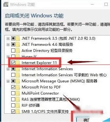 接着在功能列表中勾选ie11浏览器,如下图所示,选好之后就点确定。