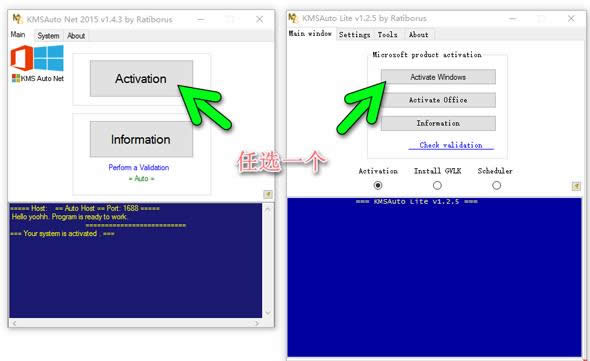 运行KMSTools.exe,在KMSAuto Net 和 KMSAuto LIte 中任意选择一个运行