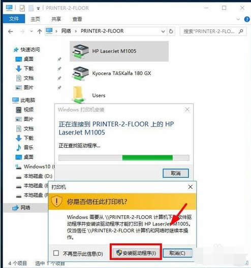 如果安装了打印机驱动就取消,如果没安装驱动就点击安装驱动。