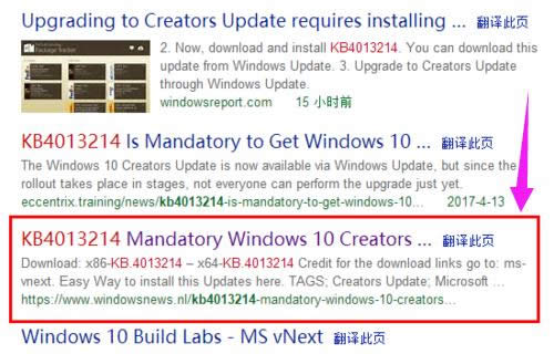 要想接收 Win10 创意者更新,需要提前安装一个名叫 kb4013214 的有关隐私设置方面的更新。只有安装了这个更新之后,才能可能接收到创意者更新。
