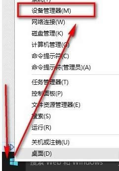 鼠标右键点击电脑左下角的图标,找到“设备管理器”选项