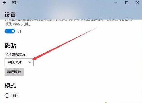 4、在打开的设置页面中,找到下面的磁贴设置项,选择单张照片;
