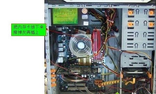 5、如果不是显卡接触不良,则可能是电脑的内存在卡松动或因为卡槽里灰尘太多导致接触不良,把电脑机箱打开,查检内存卡;