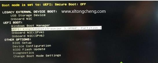 2、在需要重装系统的dell电脑上插入pe启动盘,重启后不停按F12启动快捷键,调出启动菜单对话框,选择识别到的U盘选项,一般是U盘名称或者带有USB字样的,比如KingstonData,新机型装win10系统需要uefi模式下安装,选择带UEFI模式的项,按回车键进入;