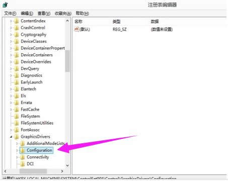 4,依次打开【SYSTEM】-【ControlSet001】-【Control】-【GraphicsDrivers】-【Configuration】。