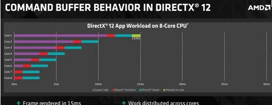另外,DX12大大提高了多线程效率,可以充分发挥多线程硬件的潜力。DX11在这方面受CPU性能的严重制约,主要是因为不能有效利用多核心。
