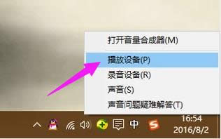 把电视机设置为电脑的默认扬声器,实现画面和声音的同步。在电脑任务栏找到小喇叭形状的音量图标,点击鼠标右键,点击“播放设备”。