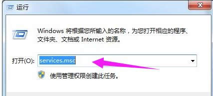 按“Win+R”键打开运行,在运行输入“services.msc”。