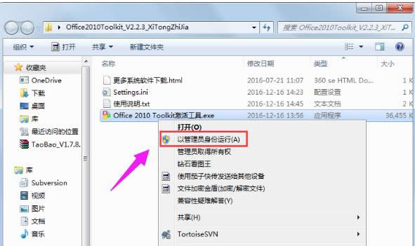 下载解压缩后运行“Office 2010 Toolkit”,如果不能运行,请以管理员身份运行。