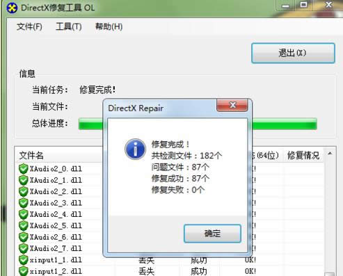 DirectX修复工具会检测丢失的dll文件并进行修复。