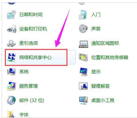 打开开始菜单找到控制面板 点击进去找到网络和共享中心