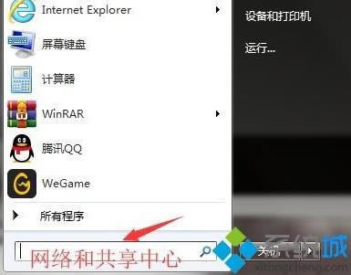 1、点击开始图标展开菜单,搜索【网络和共享中心】;