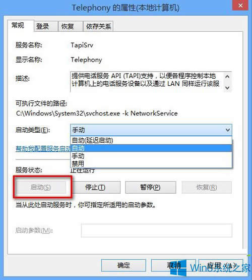 确认修改所选服务的启动类型为:自动,如果服务状态为停止,点击“启动”来启动服务。