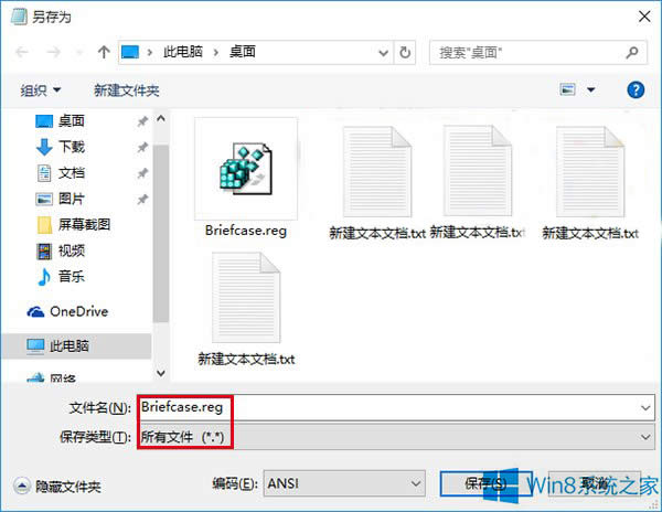 其实这项功能并没有完全消失,我们可以通过添加注册表项目的方式将其找回。方法很简单,将以下代码复制粘贴到记事本中,另存为“所有文件(*.*)”,文件扩展名为“.reg”即可(如下图,文件名可随意)。该方法同样适用于Win8/Win8.1系统。