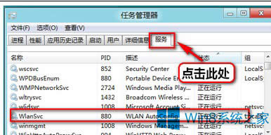 (3)同时按下CTRL,Shift和ESC三个按键,打开任务管理器,点击“服务”选项卡。