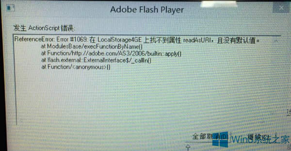Win8.1系统更新补丁后打开网页报flash出现错误,点击继续后使用正常,但是每次只要打开网页都会出现提示: