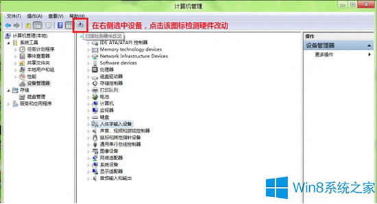 Win8系统可以定期自动为电脑检测硬件,一般情况下隔一段时间扫描一下电脑就可以了。当然如果你的电脑硬件驱动出现了问题,用户也可以主动扫描电脑硬件,具体应该怎么操作呢?
