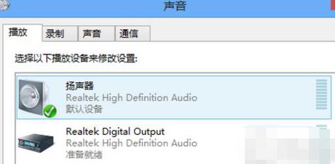 4、这里面默认是电脑上本身的扬声器,下面有Realtek Digital Output的设备,这是HDMI的音频输出,点击右键选择设置为默认设备,如下图所示: