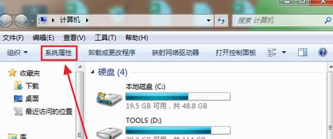 1.首先打开“我的电脑”的资源管理器,找到“系统属性”的选项;