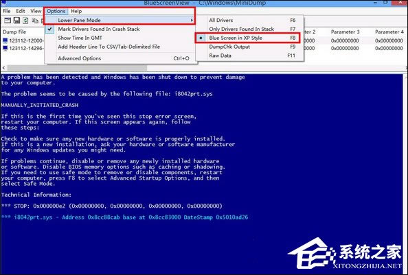 1、打开BlueScreenView就可以直接得到迷你dump文件的分析查看结果。