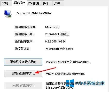 2、重复之前的动作,找到驱动程序选项卡。点击更新程序。